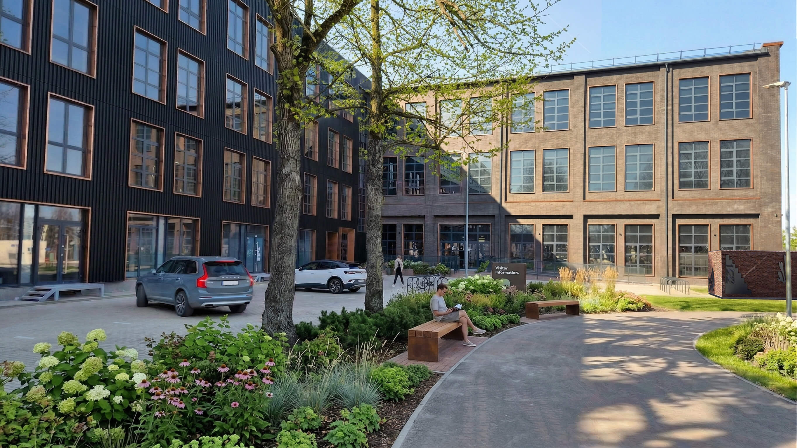 • Teritorijas apzaļumošana: kompleksā tika iestādīti vairāk nekā 400 jauni augi, veidojot zaļu oāzi pilsētas vidū un patīkamu vidi gan darbiniekiem, gan apmeklētājiem.